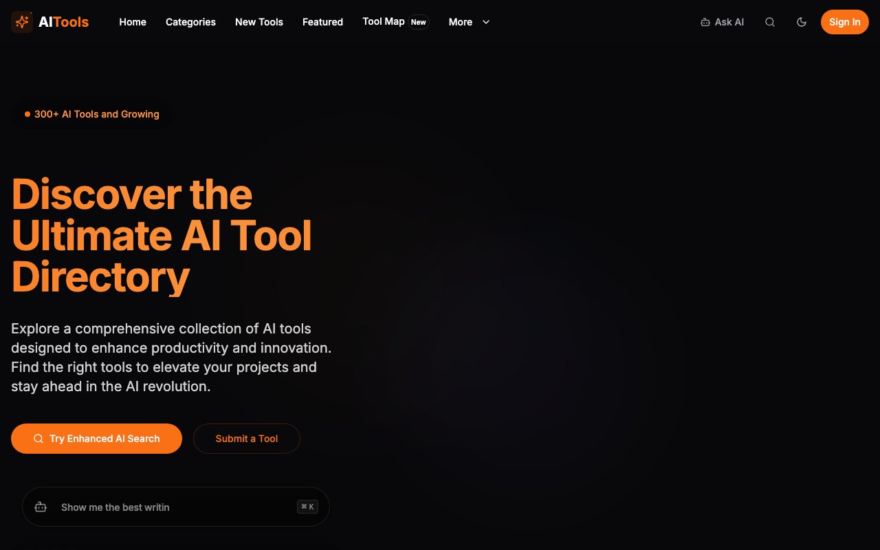 Comprehensive AI tools platform offering ML capabilities. Full-stack development with AI integration and API development. Features AI tool collection, API integrations, and user dashboard.
