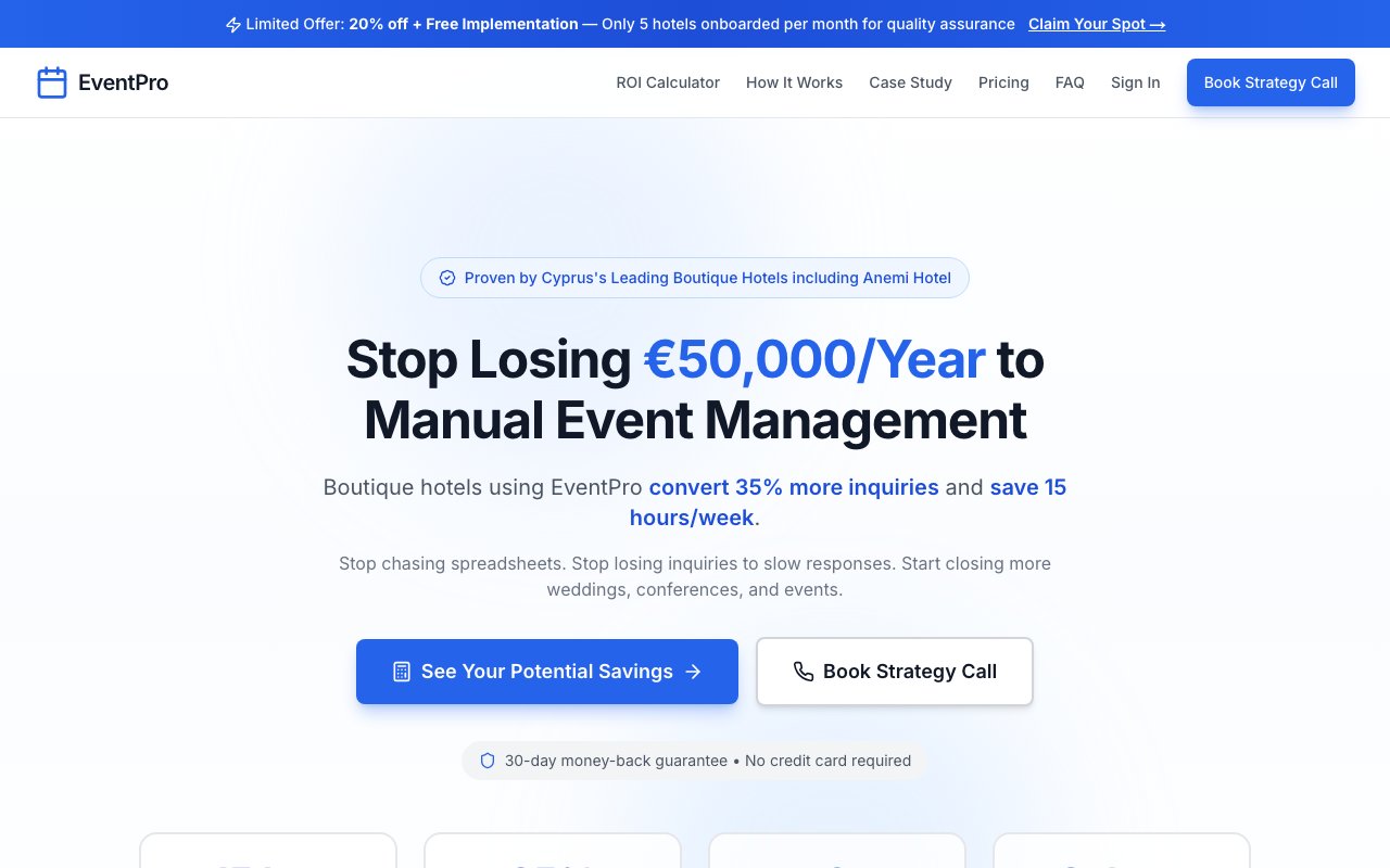 Software solution for boutique hotels to automate event management. Features instant quotes, automated follow-ups, and document generation for seamless event coordination.